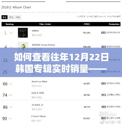 作为一名音乐爱好者或者韩国流行音乐产业的分析者,了解韩国专辑的销量数据是非常重要的,本文将指导读者如何查看往年12月22日的韩国专辑实时销量,确保每个步骤都简单明了,适合初学者和进阶用户阅读。